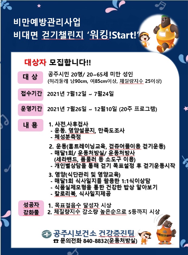 비만관리 비대면 걷기챌린지 워킹!start!프로그램운영