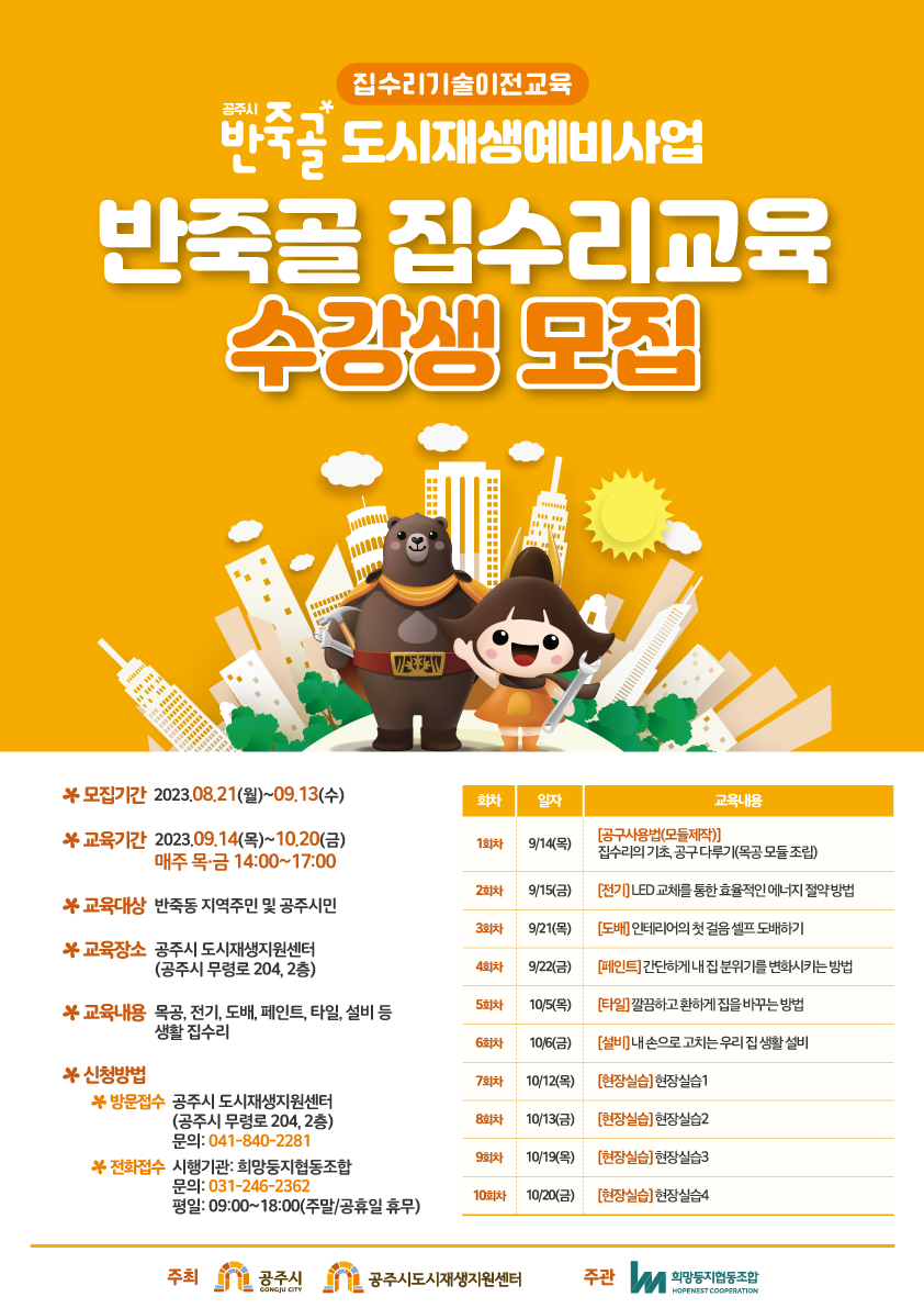 공주시 반죽골 도시재생예비사업 반죽골 집수리교육 수강생 모집