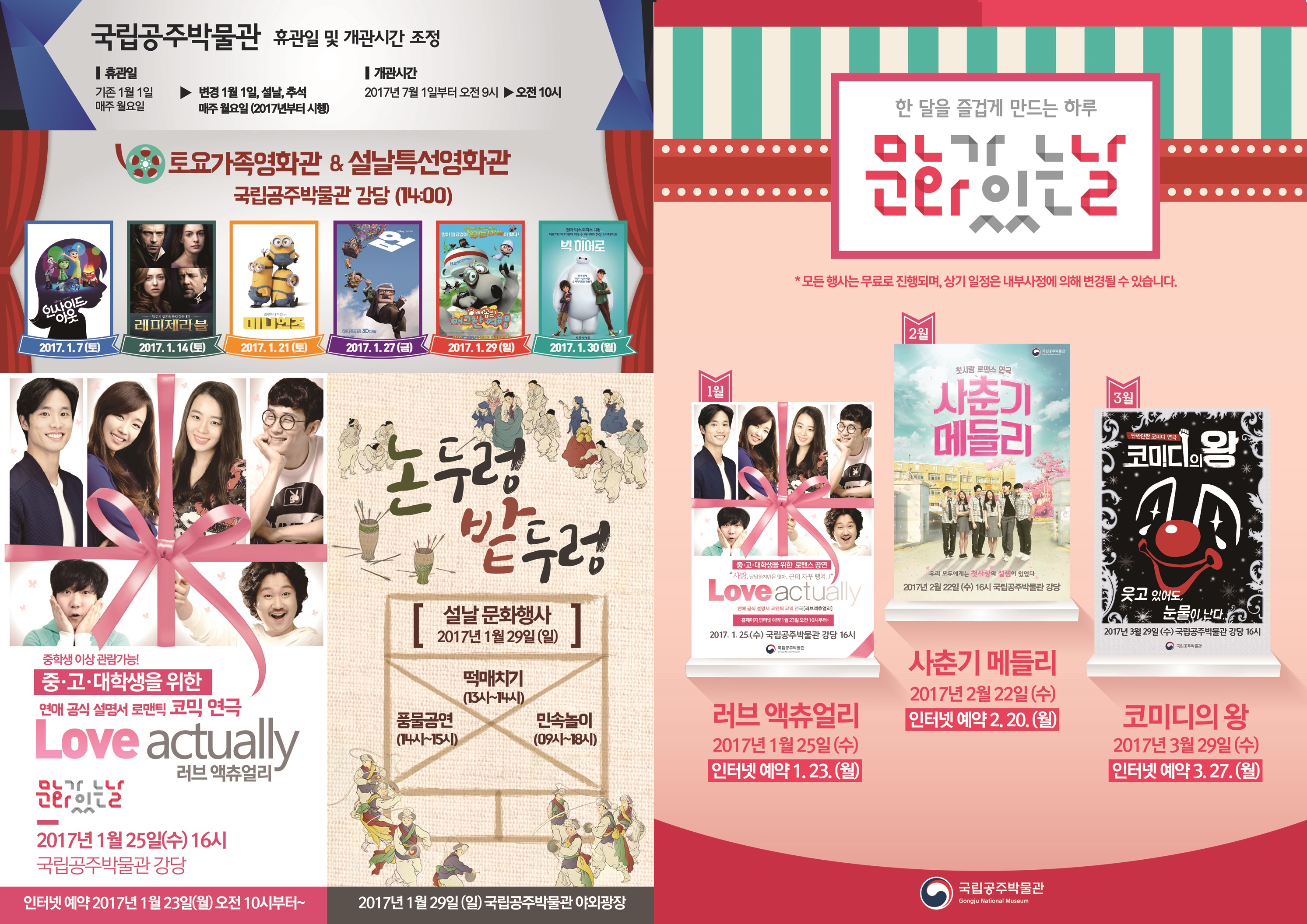 | 429 | 국립공주박물관 설명절행사 및 문화행사 알림 | 전체관리자 | 2,073 | 2017-01-10 | 2017년 1~3월 문화행사 리플렛.jpg |