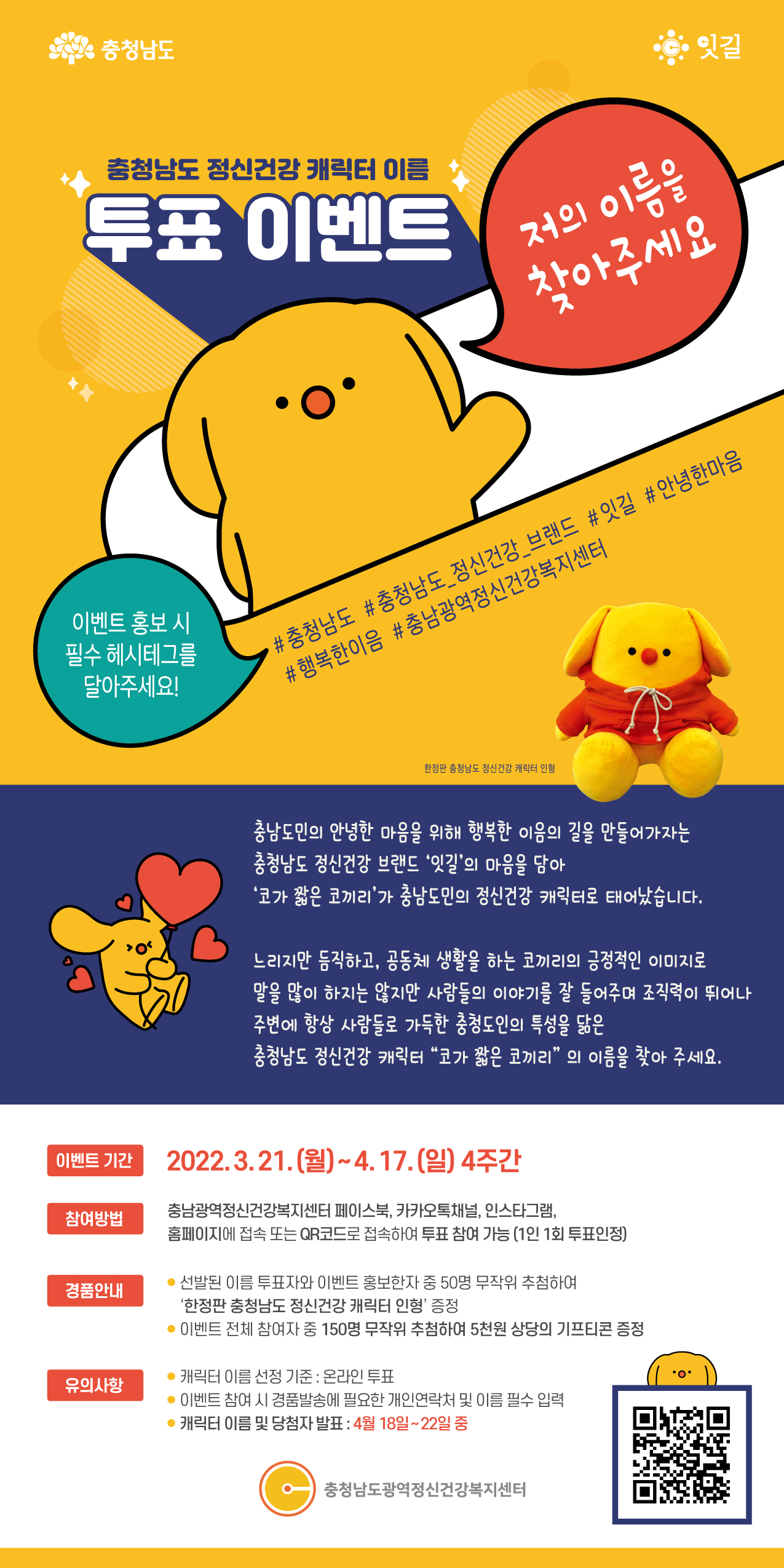 충청남도 정신건강 캐릭터 이름 투표이벤트 안내