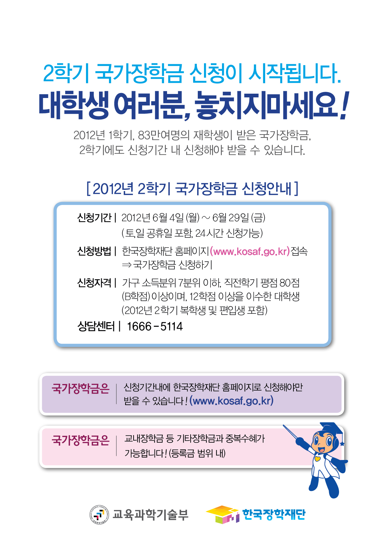2012년도 대학생 국가장학금 신청접수 공지