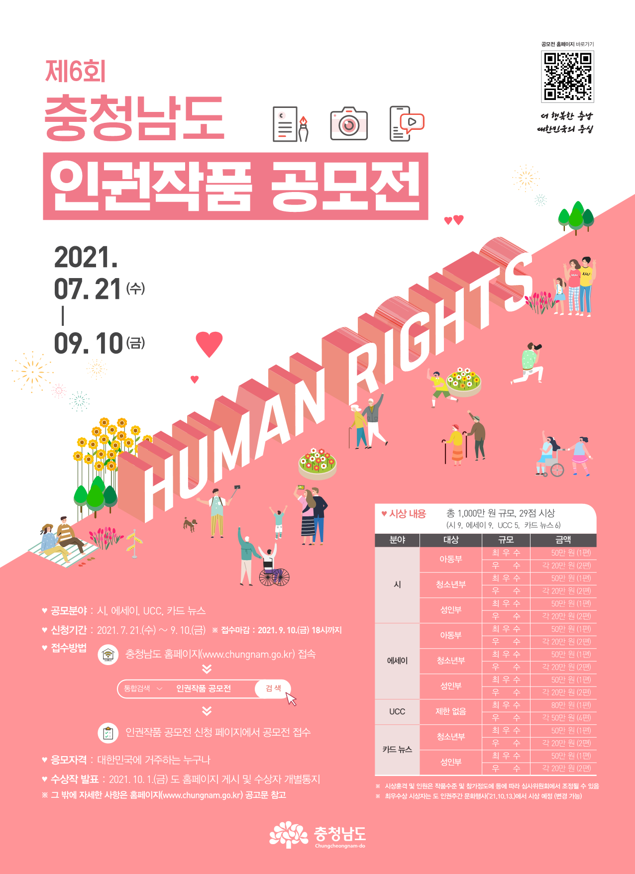 | 747 | 제6회 충청남도 인권 작품 공모전 | 전체관리자 | 79 | 2021-07-21 | 제6회 충청남도 인권작품 공모전 포스터.png |