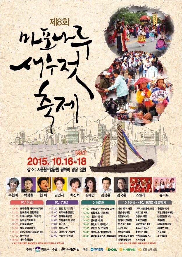 | 171 | 제8회 마포나루 새우젓 축제 | 관리자 | 3,065 | 2015-10-02 | 제8회 마포나루 새우젓 축제 포스터.jpg |