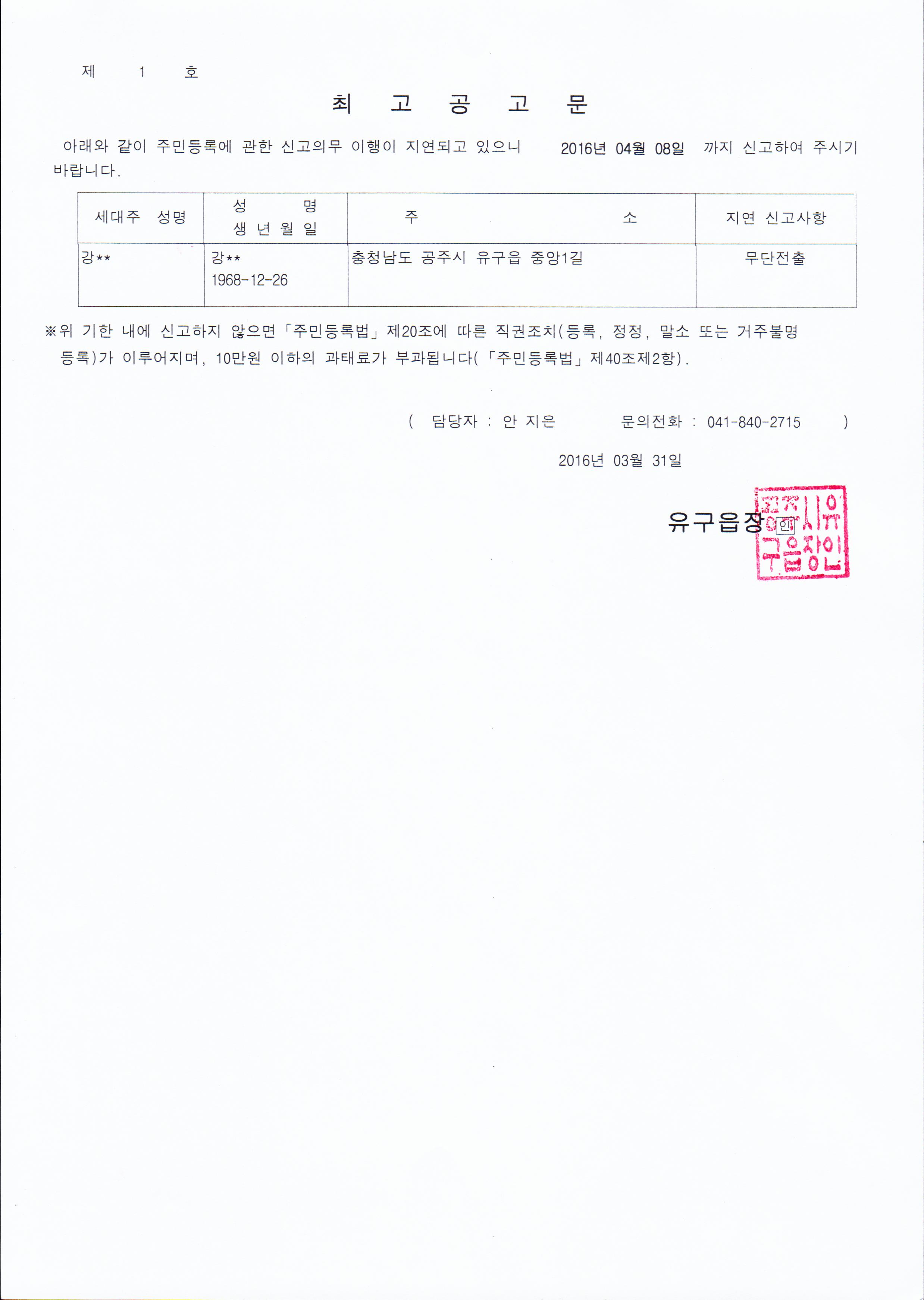 | 221 | 주민등록 최고 공고 | 유구읍 | 784 | 2016-03-31 | 최고공고문.jpg |
