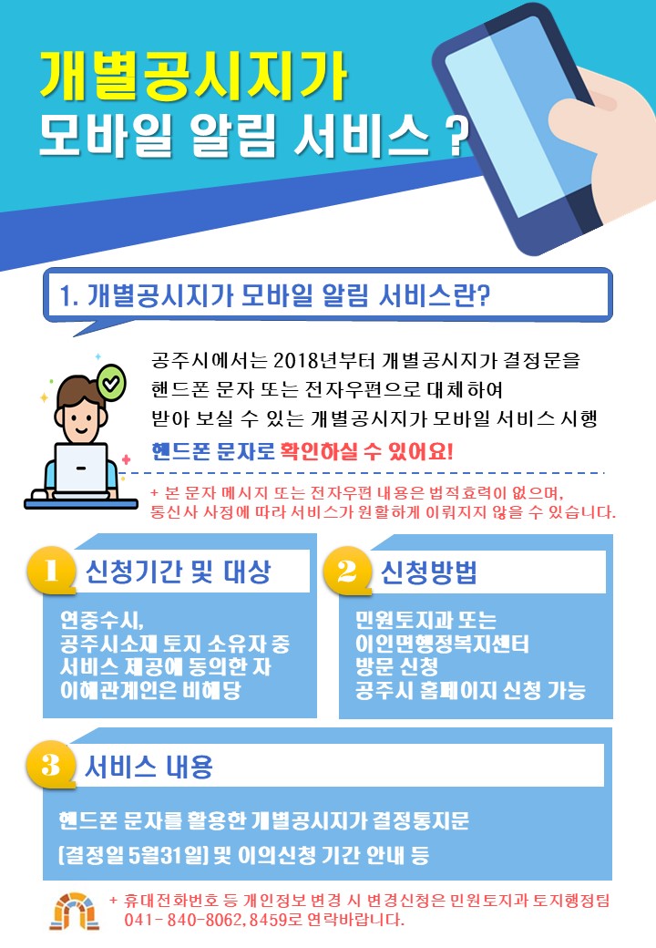 | 516 | 개별공시지가 모바일 알림 서비스 안내 | 이인면 | 21 | 2024-03-22 | 2023 개별공시지가 모바일 알림서비스 안내.jpg |