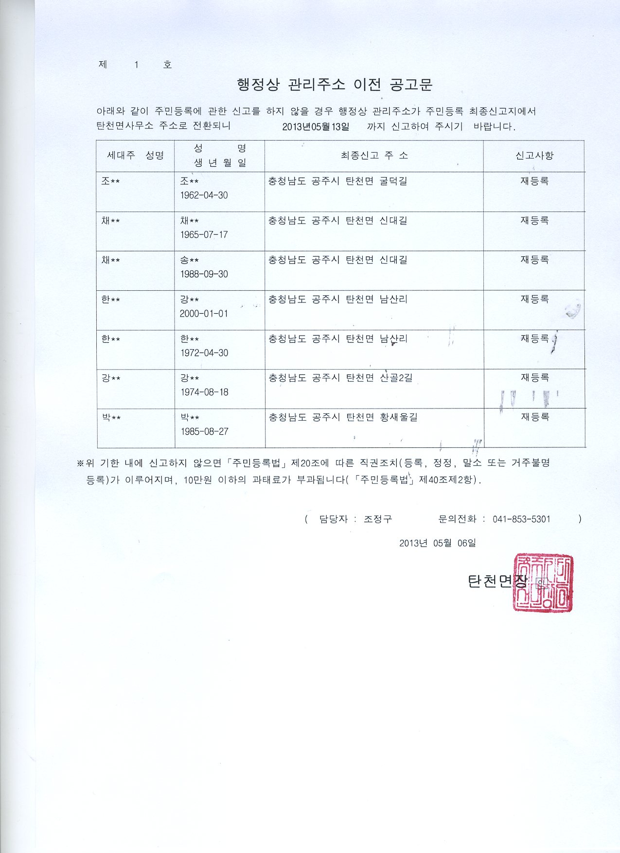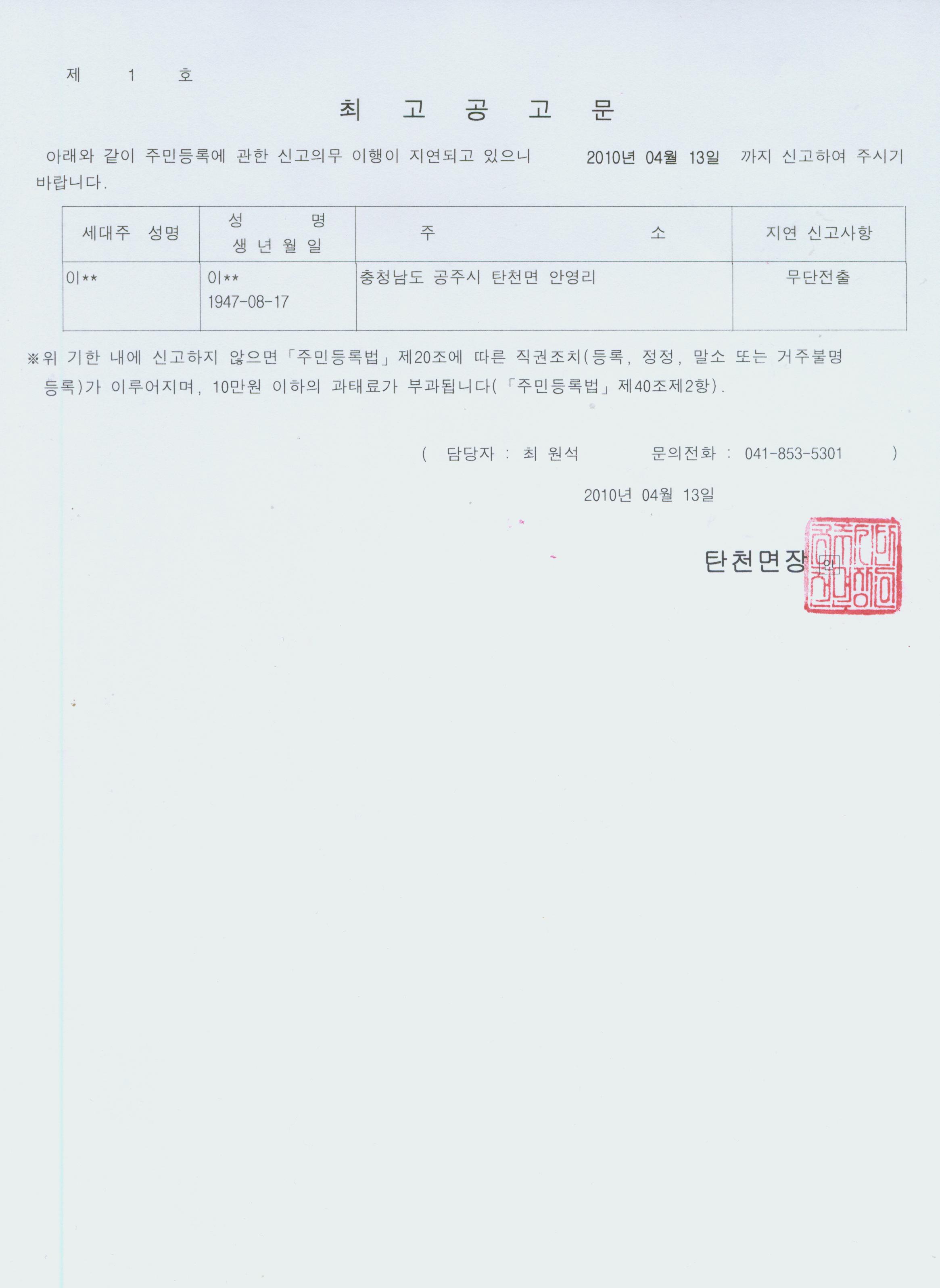 | 93 | 주민등록 신고 최고공고 | 탄천면 | 1,059 | 2013-03-12 | 최고공고자명부.xlsx |