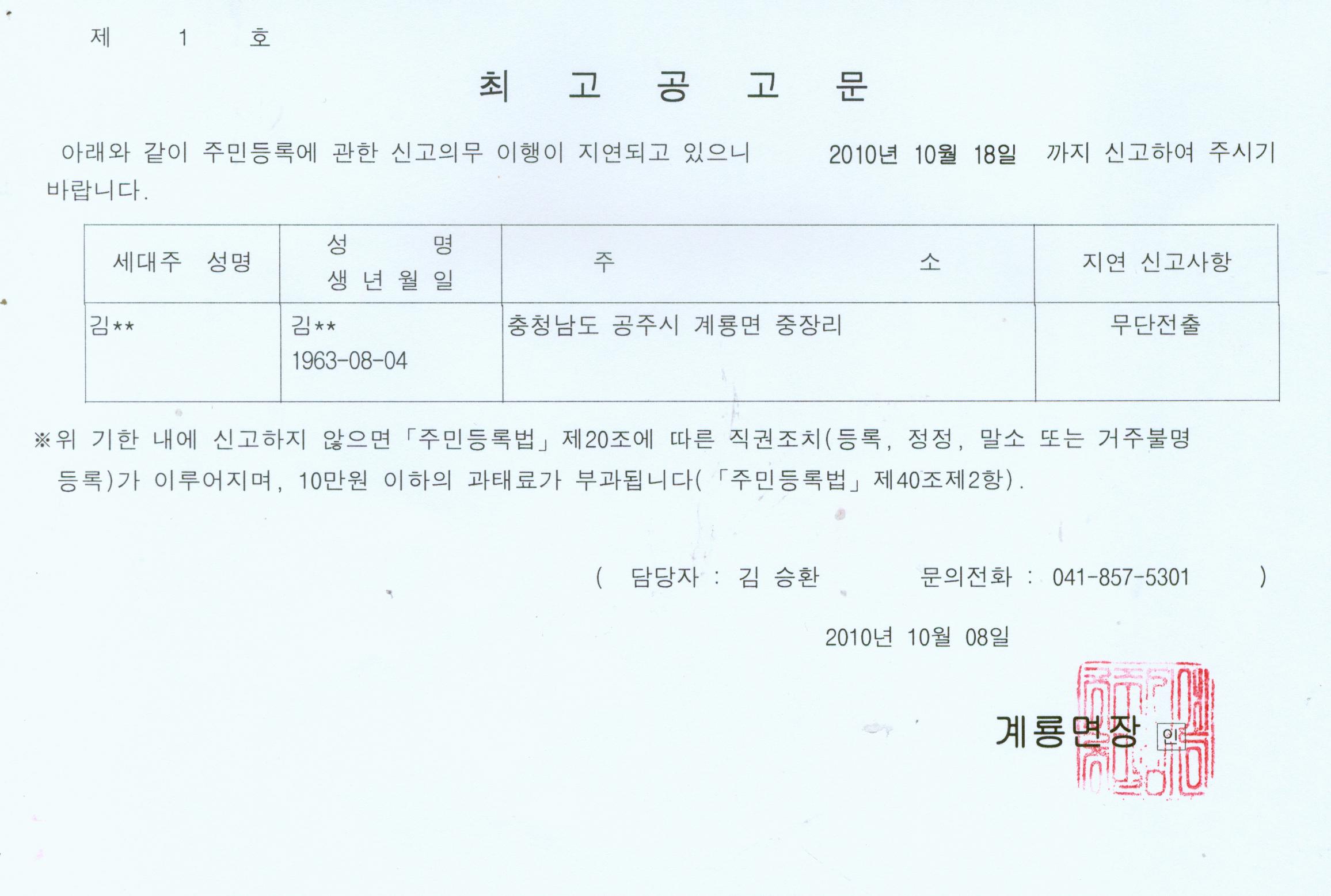 | 147 | 주민등록 직권조치사항 공고 | 관리자 | 948 | 2010-10-20 | 직권조치결과공고문.jpg |