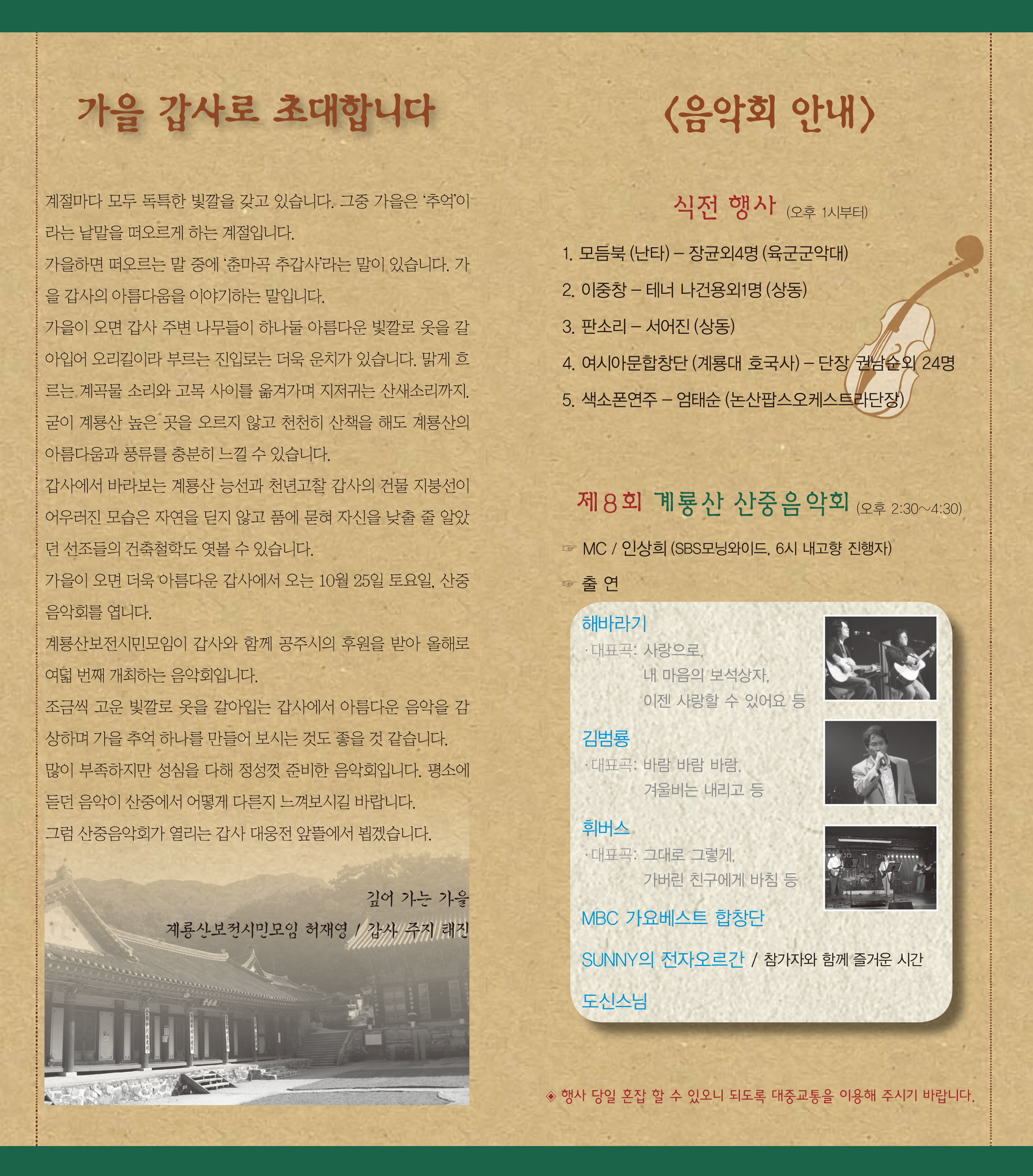 | 47 | 음악회가 계룡면 지역에서.......... | 관리자 | 581 | 2008-10-22 | 산중음악회.jpg |