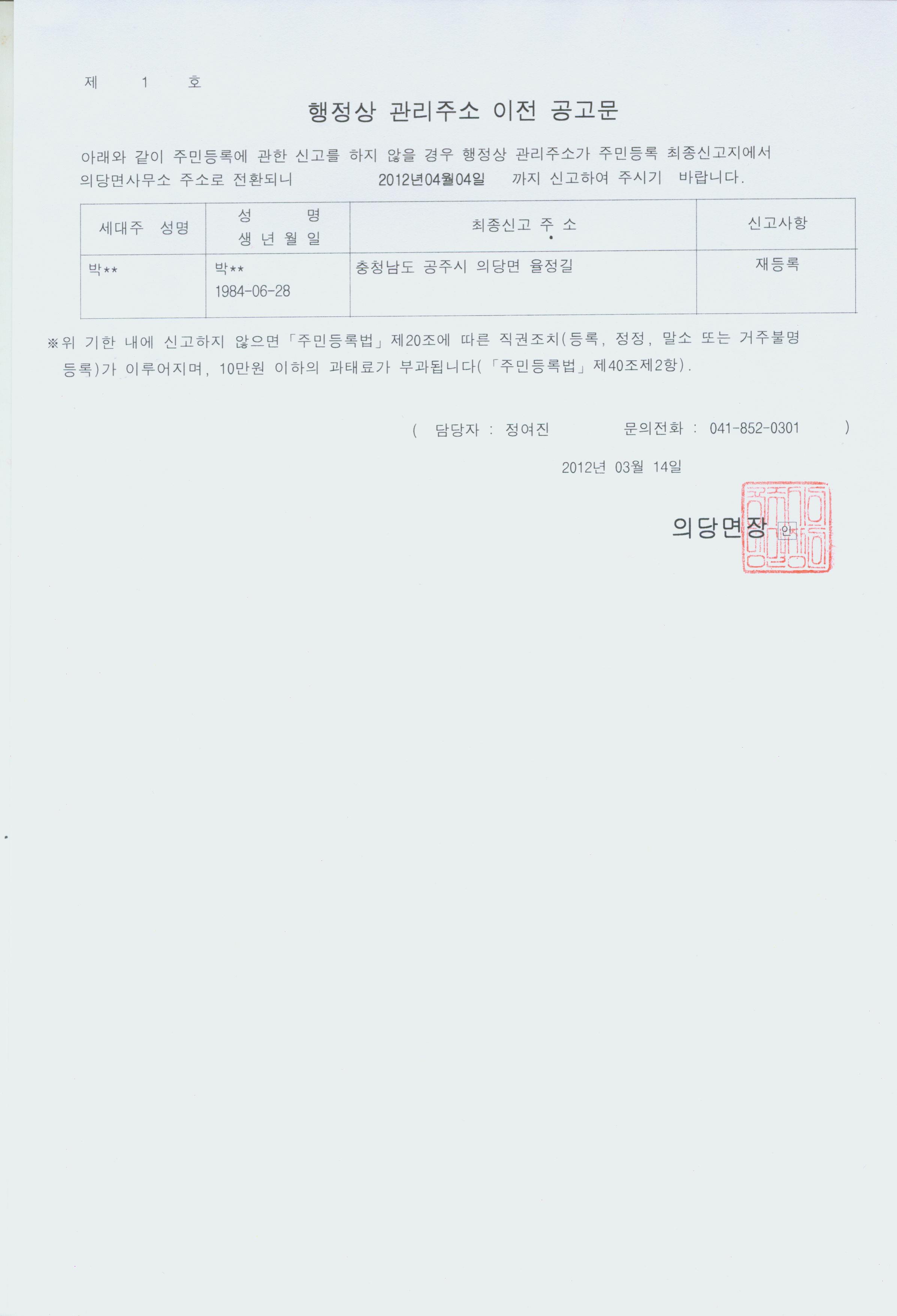 | 98 | 거주불명등록자 행정상 관리주소 이전 1차 공고 | 관리자 | 895 | 2012-03-14 | 행정상 관리이전 공고문.jpg |
