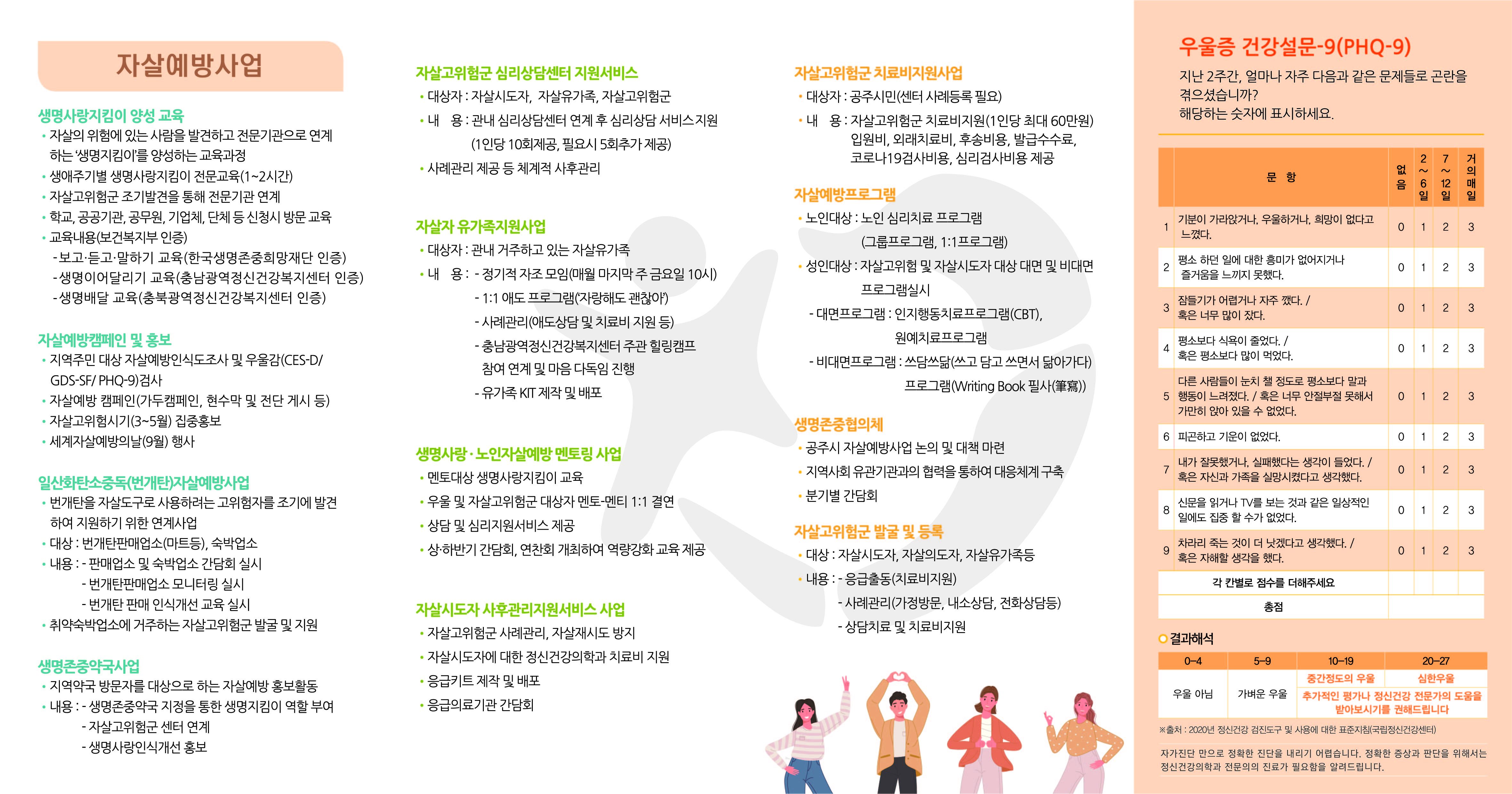 | 375 | 2024년 자살 고위험군 심리상담 운영 홍보 | 우성면 | 103 | 2024-11-18 | 사본 -공주시자살예방사업 리플릿.jpg |