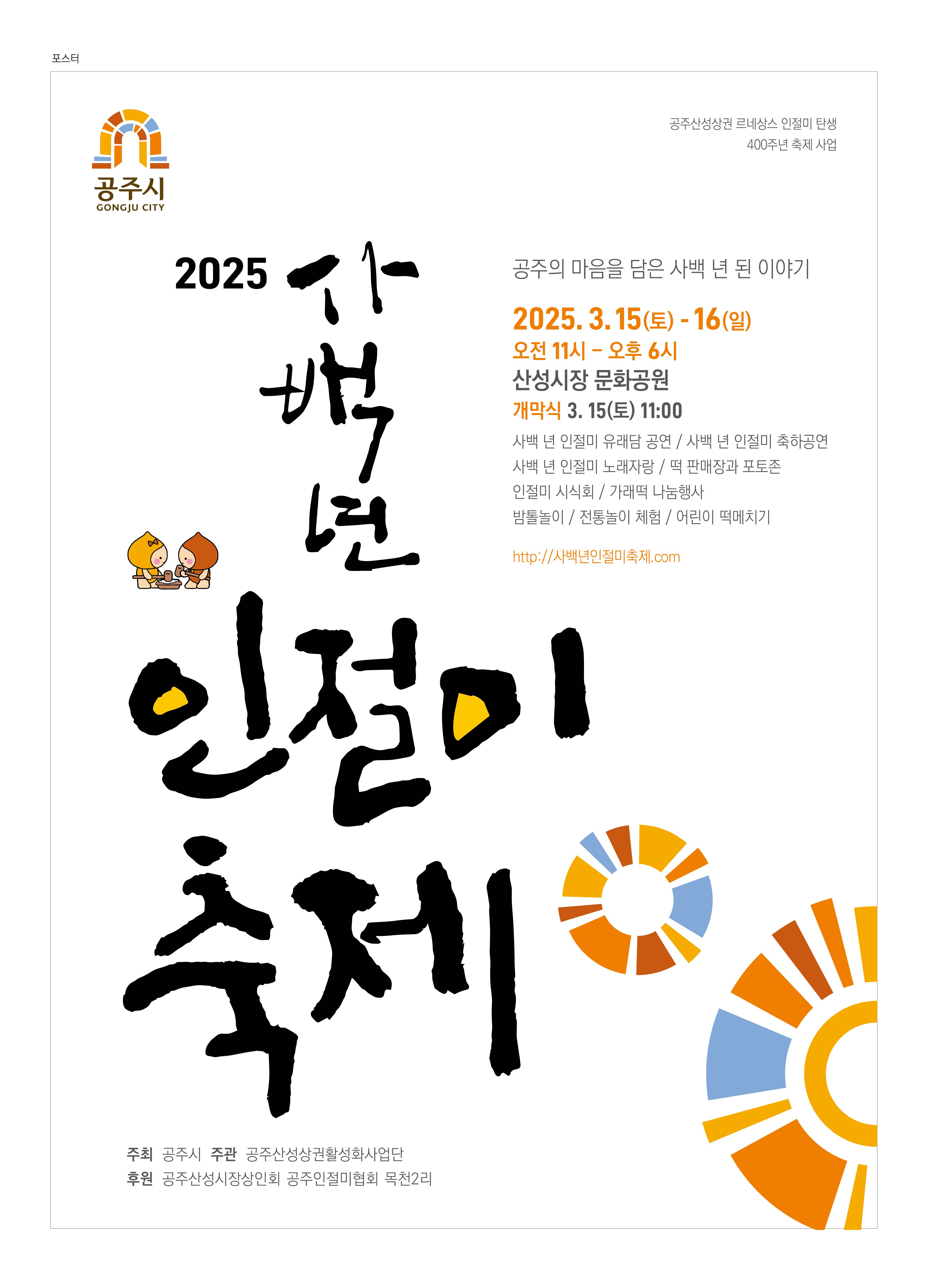 | 384 | 『2025년 사백년 인절미 축제』 개최 안내 | 우성면 | 228 | 2025-02-05 | 사백년 인절미 축제.jpg |