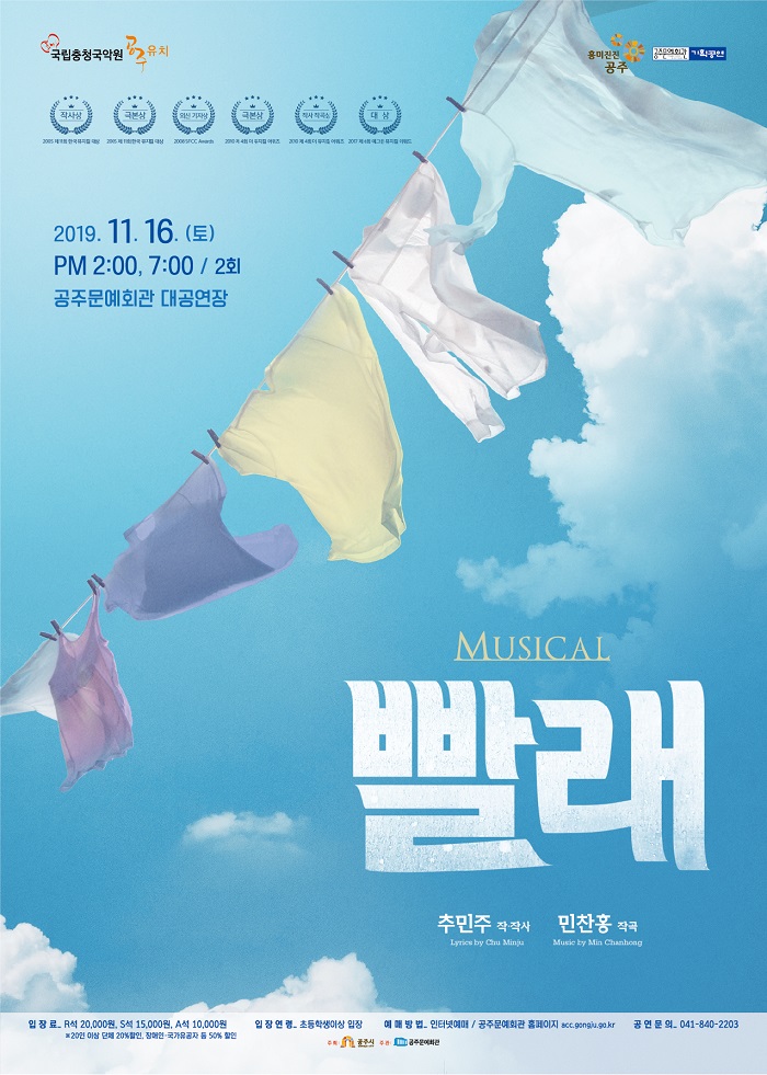 | 502 | 기획공연 뮤지컬 '빨래' 티켓오픈 | 사곡면 | 203 | 2019-10-23 | 1571746138909.jpg |