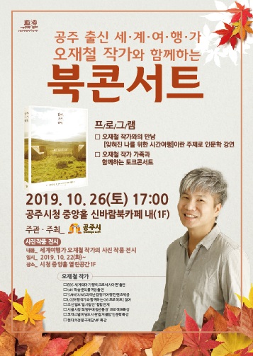 | 497 | 공주출신 세계여행가 오재철 작가와 함께하는 북콘서트 안내 | 사곡면 | 217 | 2019-10-18 | 사본 -홍보용.jpg |