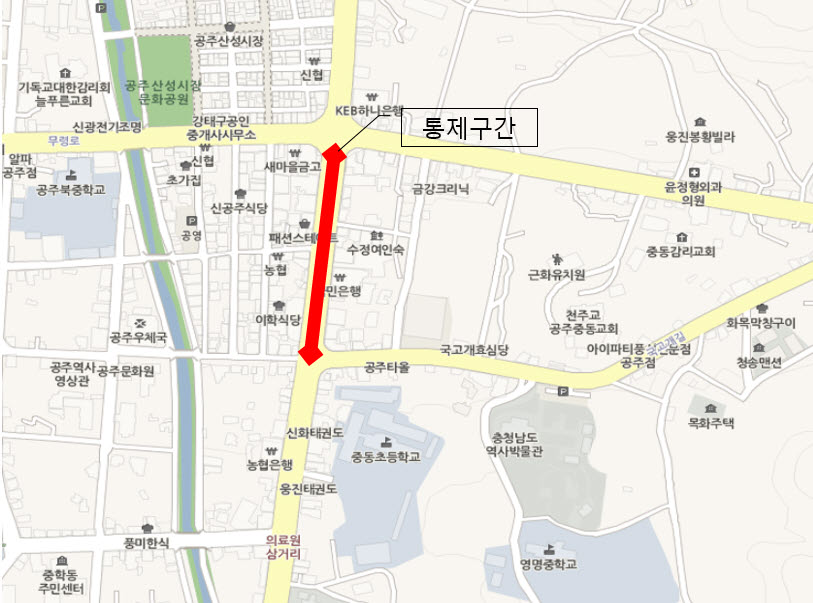 | 475 | [긴급]차량통행 통제(변경)계획 알림 [공주시청 앞 ~공주사대부고 앞] | 사곡면 | 224 | 2019-09-19 | 통행의 금지제한(변경) 공고문 (시청~사대부고).pdf |