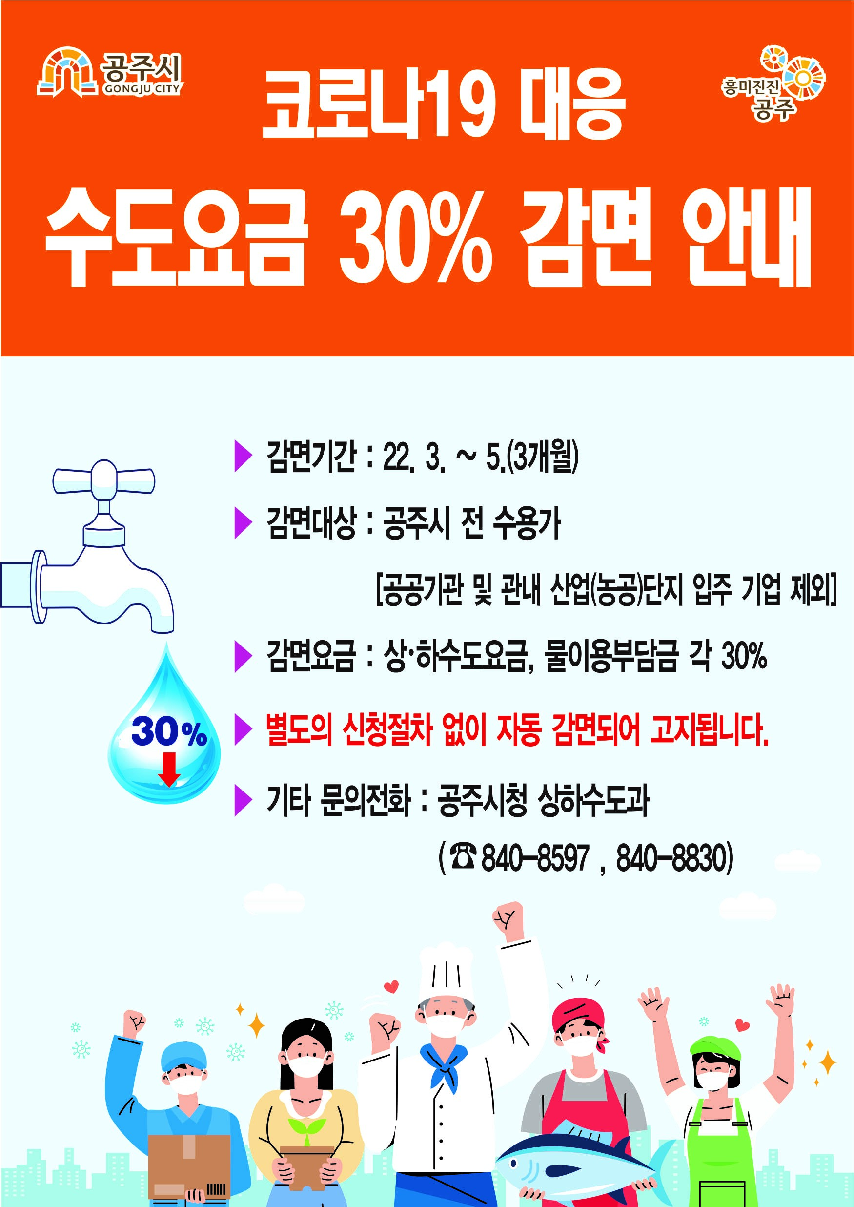| 415 | 코로나19 대응 수도요금 30% 감면 안내 | 중학동 | 93 | 2022-02-24 | 수도요금 감면 안내 리플릿.jpg |