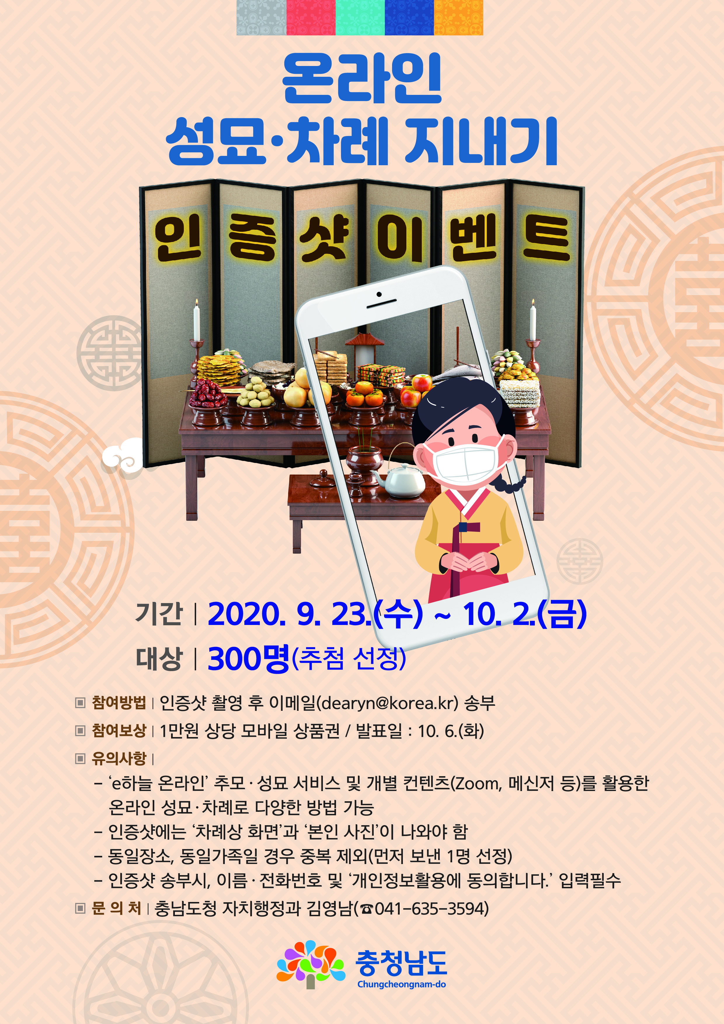 | 973 | 추석 온라인 성묘,차례 지내기 인증샷 이벤트 홍보 | 웅진동 | 28 | 2020-09-27 | 온라인 성묘차례지내기 이벤트.jpg |