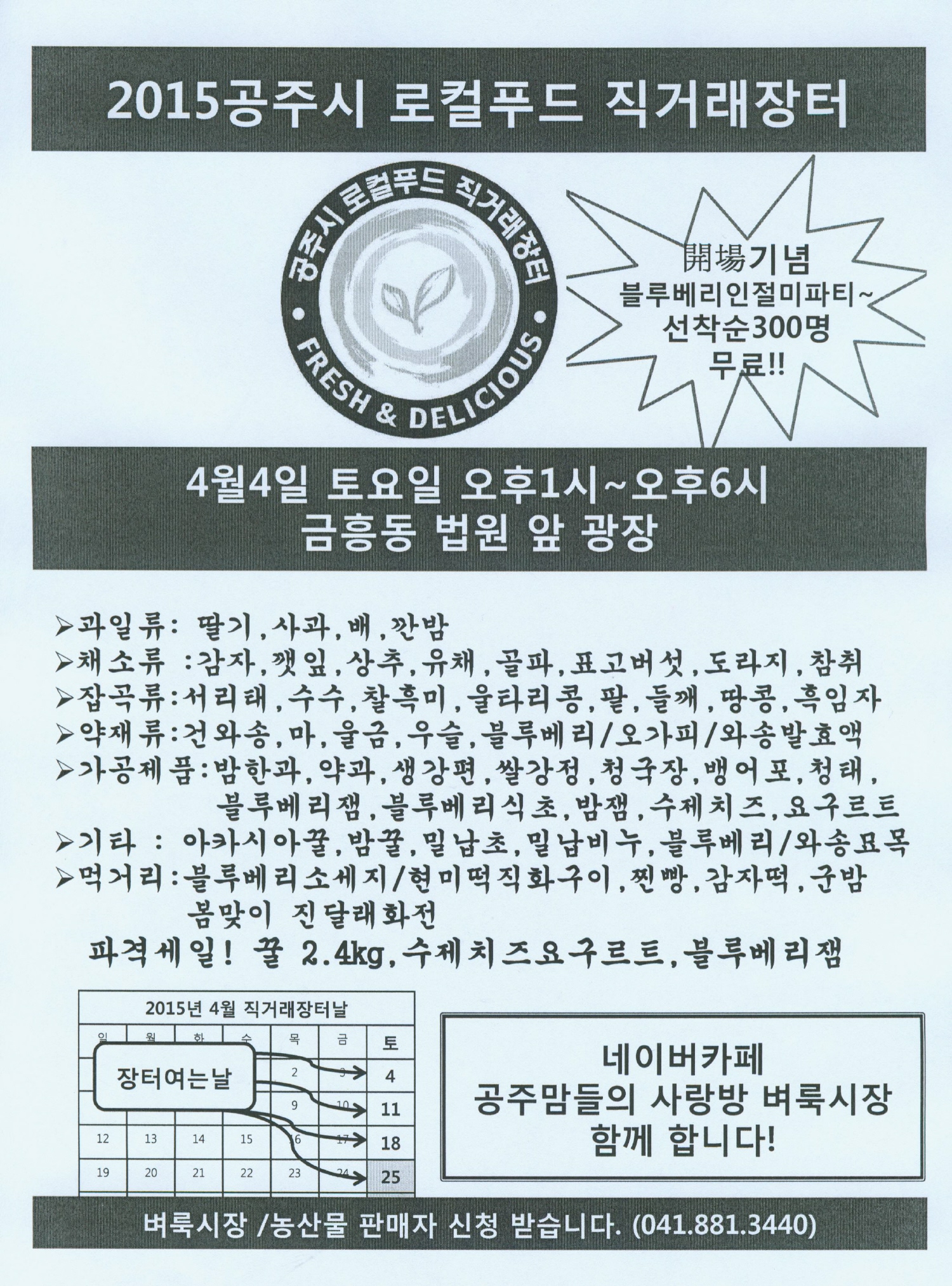 | 485 | 공주시 로컬푸드 직거래장터 개장 안내 | 웅진동 | 939 | 2015-04-08 | 일괄편집_로컬푸드.jpg |