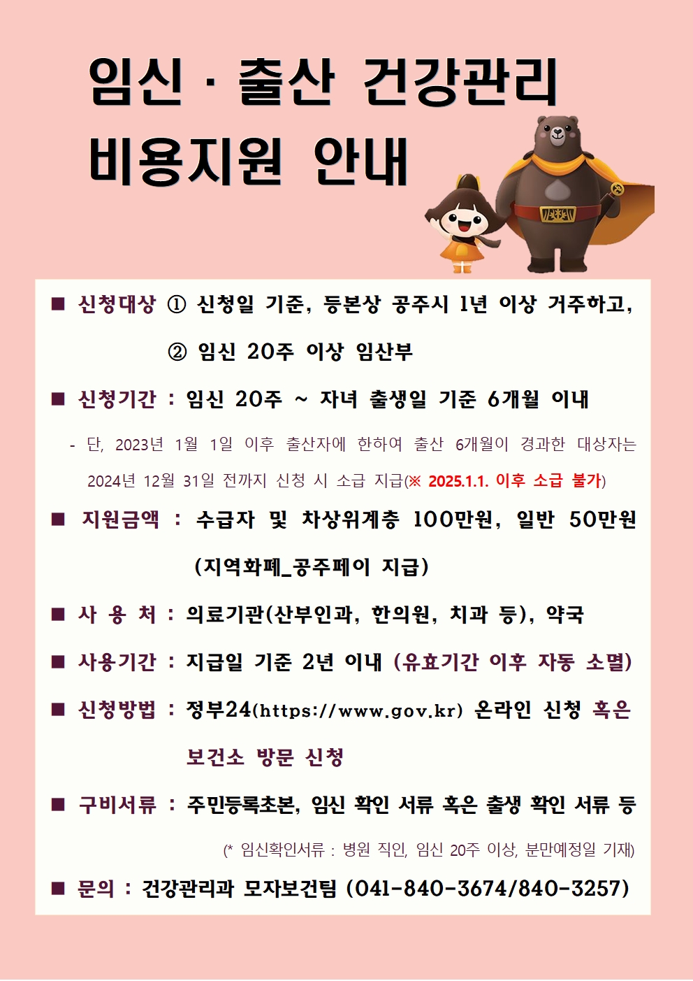 | 750 | 2024년 공주시 임신·출산 건강관리 비용지원 사업 안내 | 금학동 | 102 | 2024-11-14 | 안내문(임신출산건강관리비용지원).jpg |
