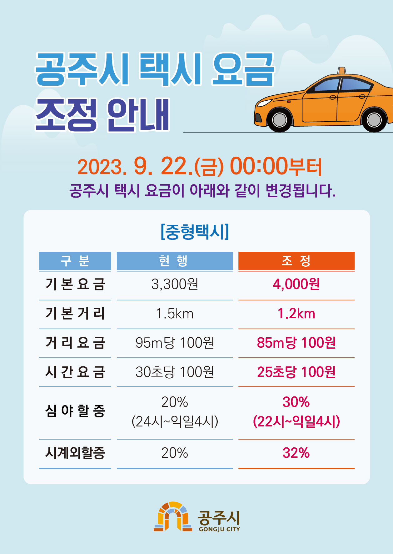 | 736 | 공주시 택시 운임요금 변경 안내 | 옥룡동 | 2,445 | 2023-09-12 | 택시 요금조정 안내문.jpg |
