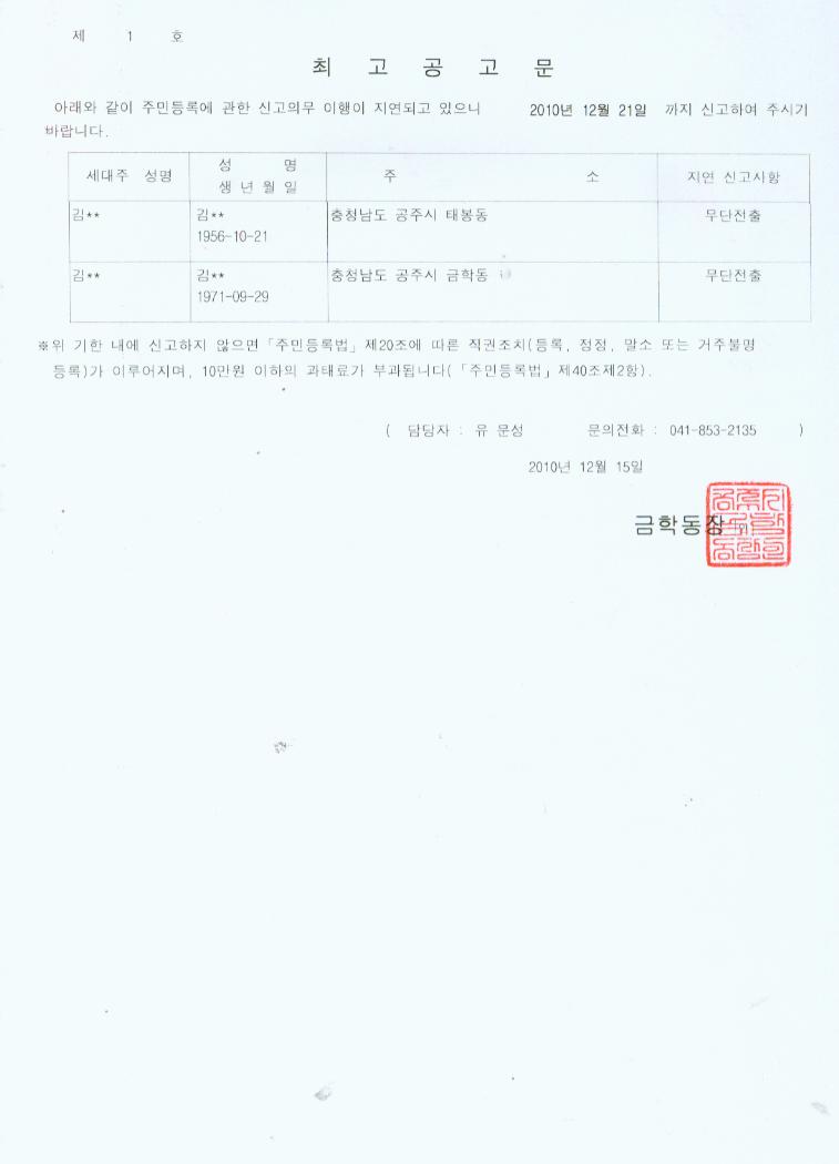 | 4686 | 2010년 4./4분기 주민등록 특별사실조사 관련 최고 공고 | 전미영 | 464 | 2010-12-15 | b_030203_20101215145714_0_882.jpg |
