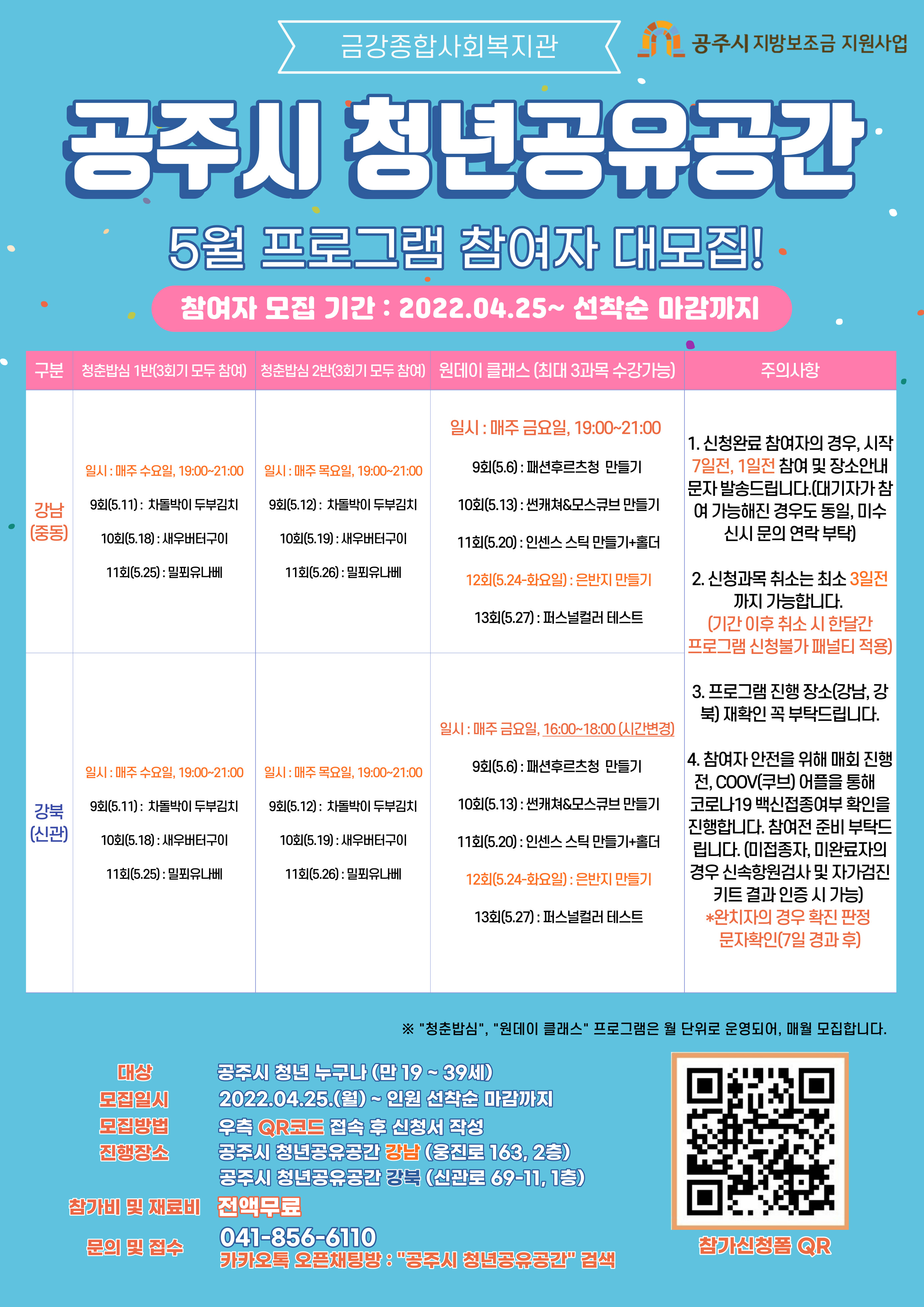 | 14 | 청년 공유공간 활성화 프로그램 참가자 모집(5월) | 여성가족과 | 264 | 2022-04-20 | 5월홍보지.jpg |