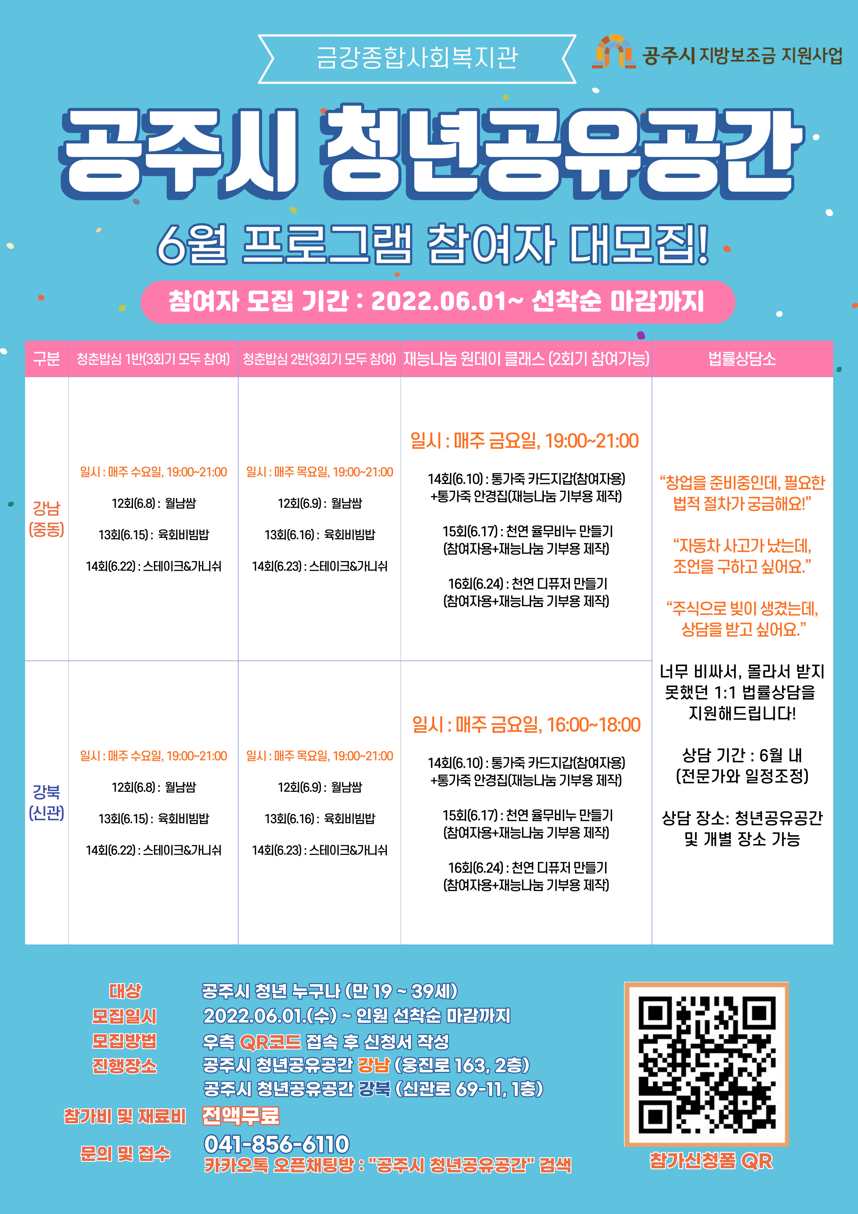 | 17 | 청년 공유공간 활성화 프로그램 모집(6월) | 여성가족과 | 286 | 2022-06-07 | 6월홍보지.jpg |