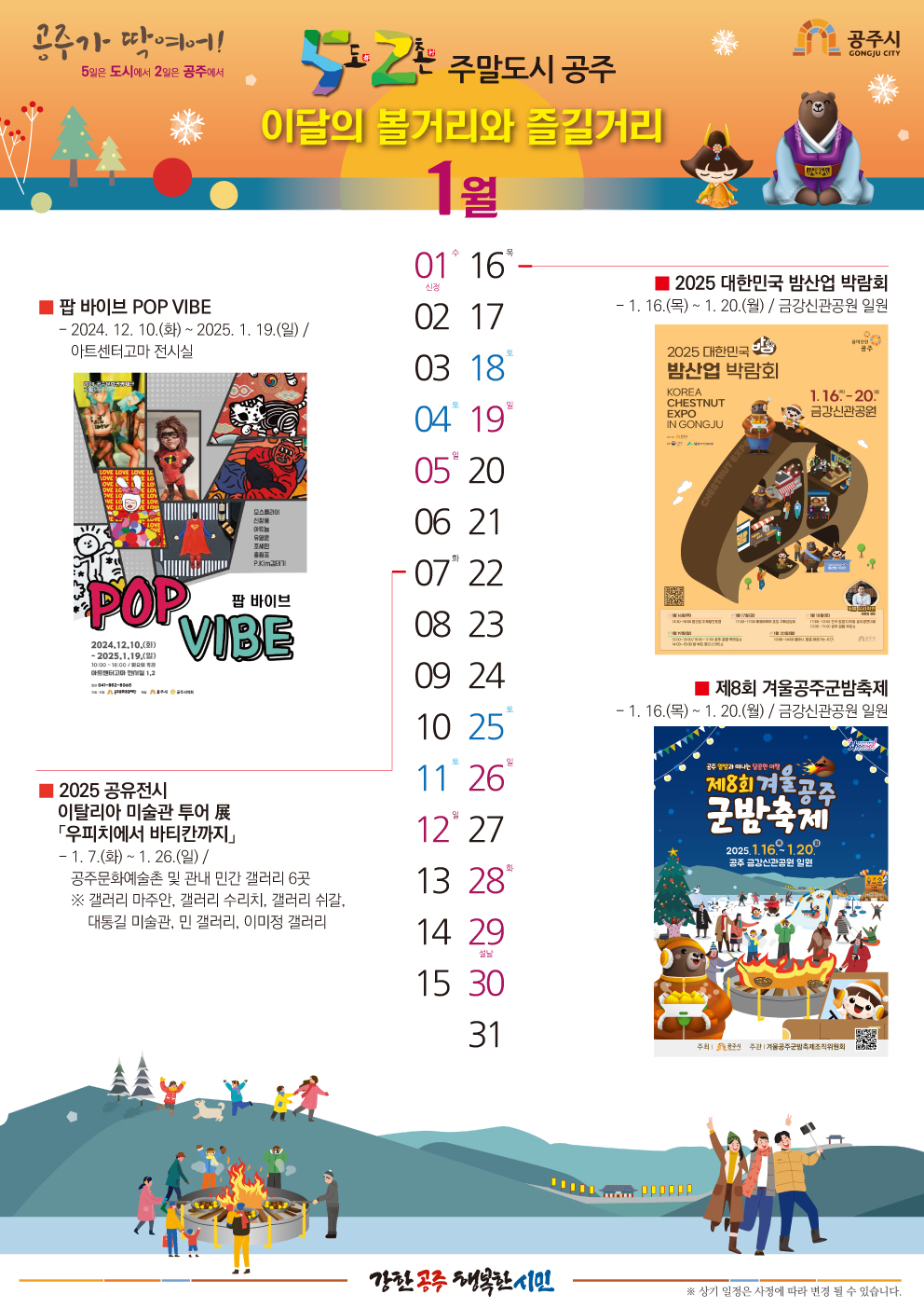 | 33 | 2025년 1월 이달의 볼거리‧즐길거리입니다 | 지역활력과 | 260 | 2025-01-07 | 2025 이달의 볼거리즐길거리(1월).jpg |