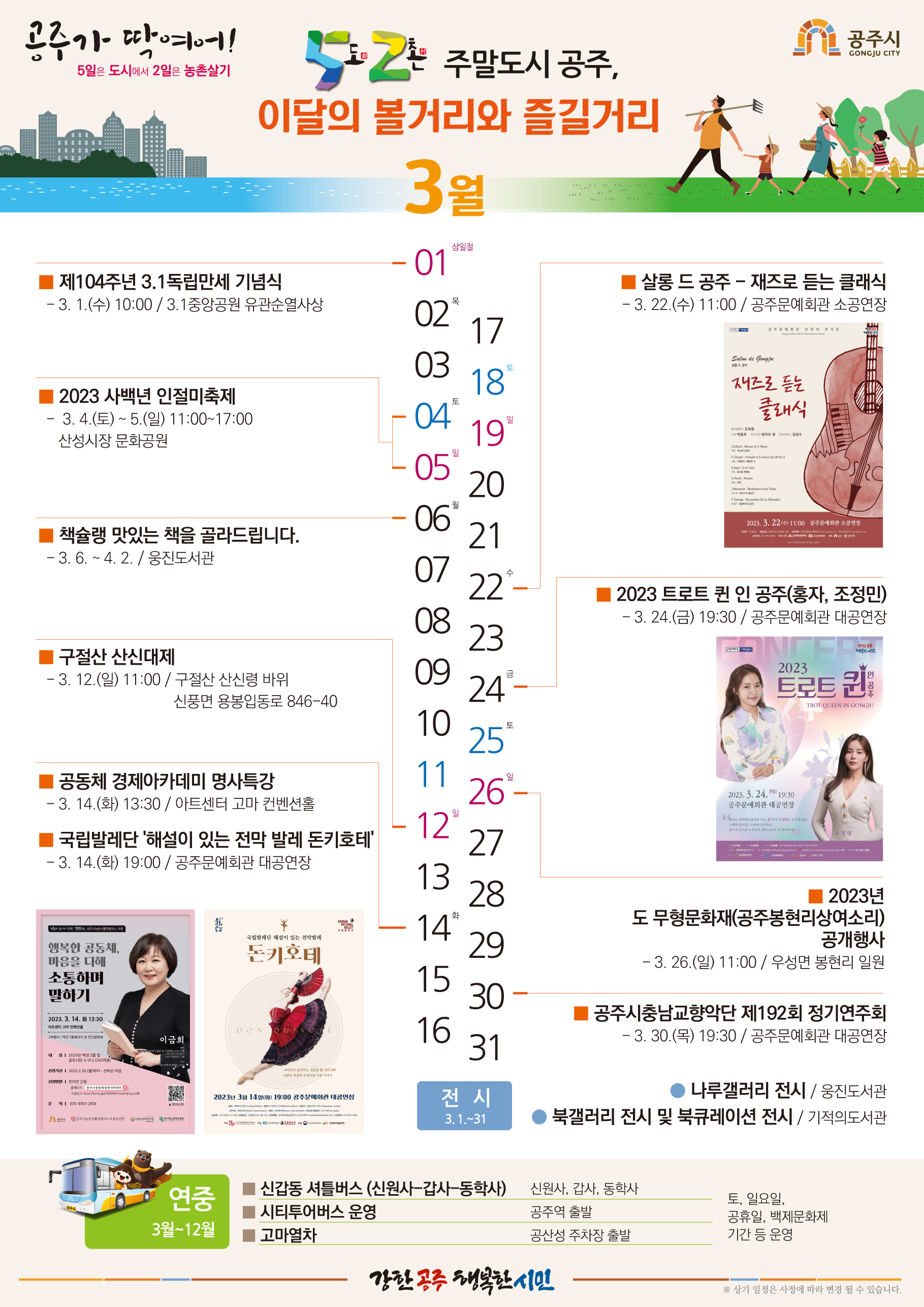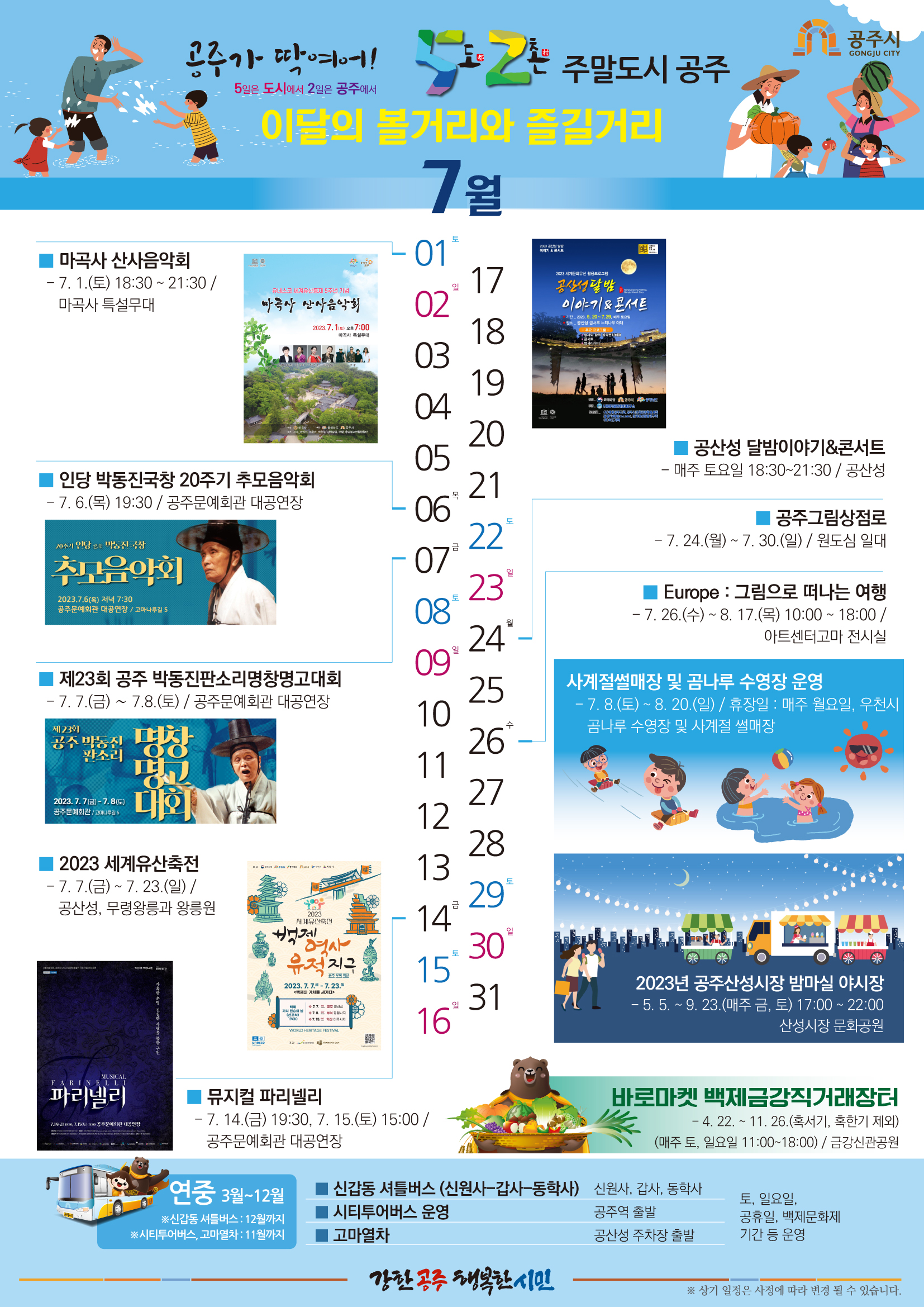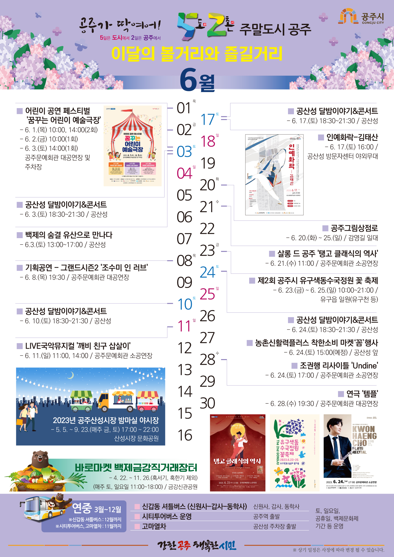 각종 공연, 체험프로그램 등 즐길거리가 넘치는 공주의 주말로 여러분을 초대합니다