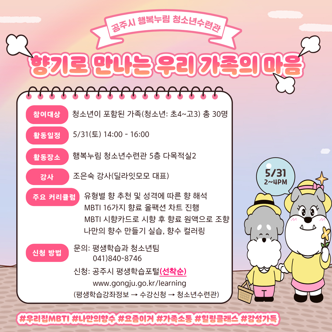 *대상: 공주시 거주자 우선(타 지역민의 경우 인원 미달 시 신청 가능)